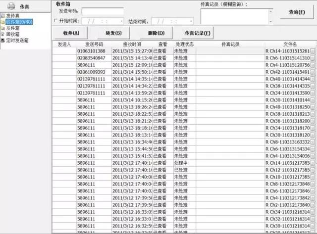 融合通信電子傳真系統(tǒng)通過分配的傳真DID號碼進行傳真的收發(fā)。系統(tǒng)采用多路并發(fā)通道實現(xiàn)指揮中心電子傳真文件即時收發(fā)功能,支持傳真文件批量群發(fā)、導(dǎo)入后發(fā)送、發(fā)送記錄查詢、傳真接收提醒、傳真接收后保存、傳真接收后轉(zhuǎn)換編輯、分發(fā)等功能。