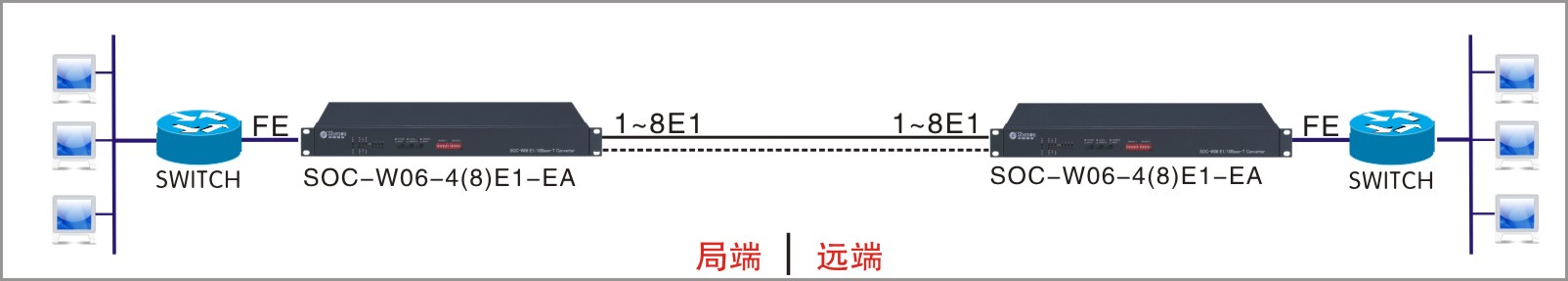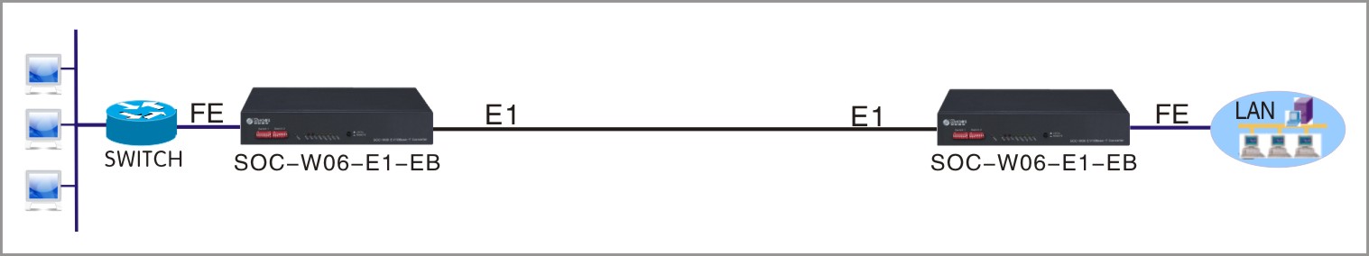 SOC-W06系列協(xié)議轉(zhuǎn)換器(又稱網(wǎng)橋)是利用E1線路作為鏈路傳輸,以太網(wǎng)數(shù)據(jù)下掛業(yè)務(wù)的通信設(shè)備。可輕松地通過廣域網(wǎng)實(shí)現(xiàn)兩個(gè)分離的局域網(wǎng)間的互連,方便地?cái)U(kuò)大了局域網(wǎng)的地域范圍;在遠(yuǎn)程組網(wǎng)、異地辦公室聯(lián)網(wǎng)、遠(yuǎn)程監(jiān)控等領(lǐng)域有著廣泛的應(yīng)用;并且構(gòu)
