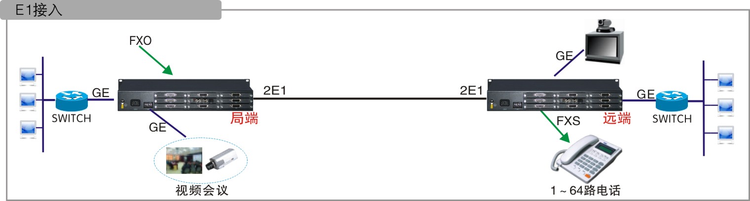 選擇E1通道傳輸時(shí),任意1個(gè)E1可以傳輸64路語音