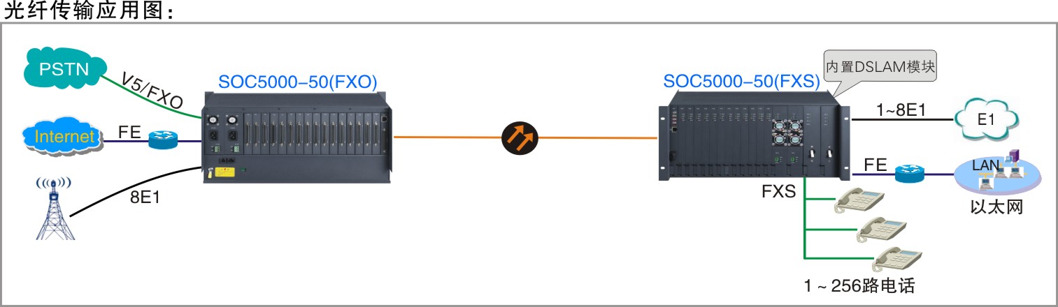 ◆ SOC5000-50綜合接入設(shè)備多種功能模塊配合使用,接入更靈活,業(yè)務更豐富