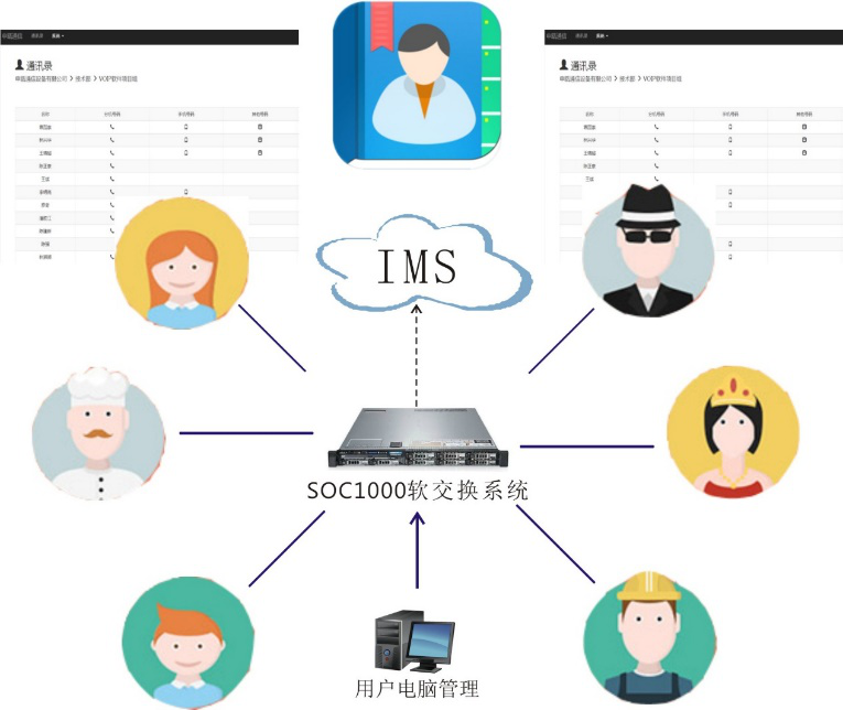 使用配套SIP話機(jī)實現(xiàn)企業(yè)內(nèi)部通訊錄共享功能,soc1000軟交換系統(tǒng)企業(yè)通訊錄應(yīng)用模塊可統(tǒng)一導(dǎo)入企業(yè)人員名單聯(lián)系方式,配置成通訊錄方式供下掛SIP話機(jī)和手機(jī)APP終端使用,并可同步通訊錄名單。